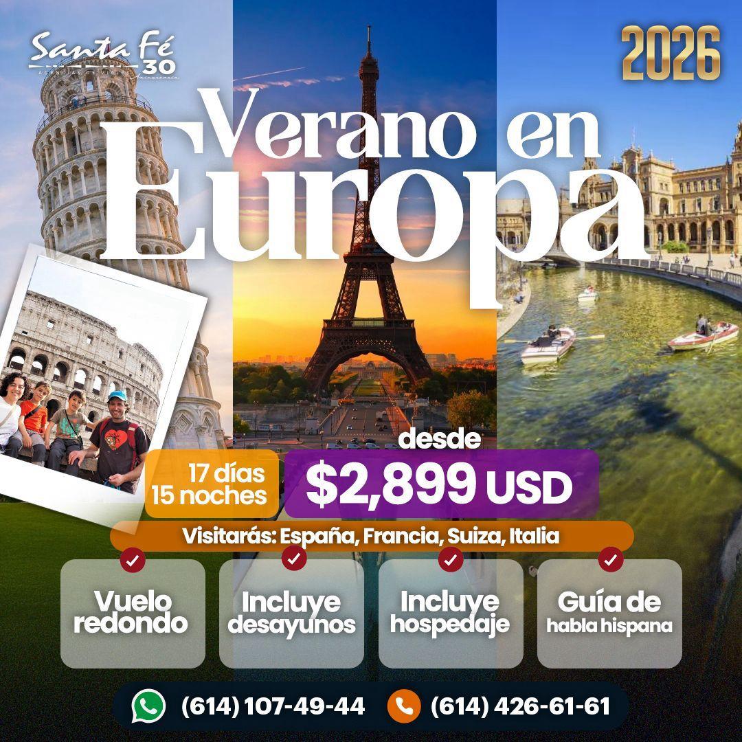Conoce España, Francia, Suiza e Italia en un recorrido de 17 días / 15 noches.