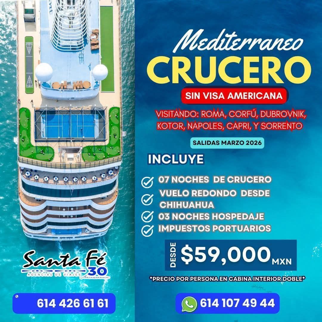 🌟 Navega, explora y vive lo mejor del Mediterráneo con la comodidad y servicio de Santa Fe Agencias de Viajes.